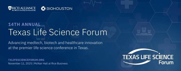 Rice Alliance and BioHouston will host the 14th Annual Texas Life Science Forum on November 11, 2025. The Texas Life Science Forum, co-hosted by BioHouston and Rice Alliance, is the premier life science and healthtech event in Texas that brings together members from industry, emerging life science companies, academic and investors. Hear pitches from innovative and early stage life science companies, network and enjoy exciting panels, keynotes and speakers.
